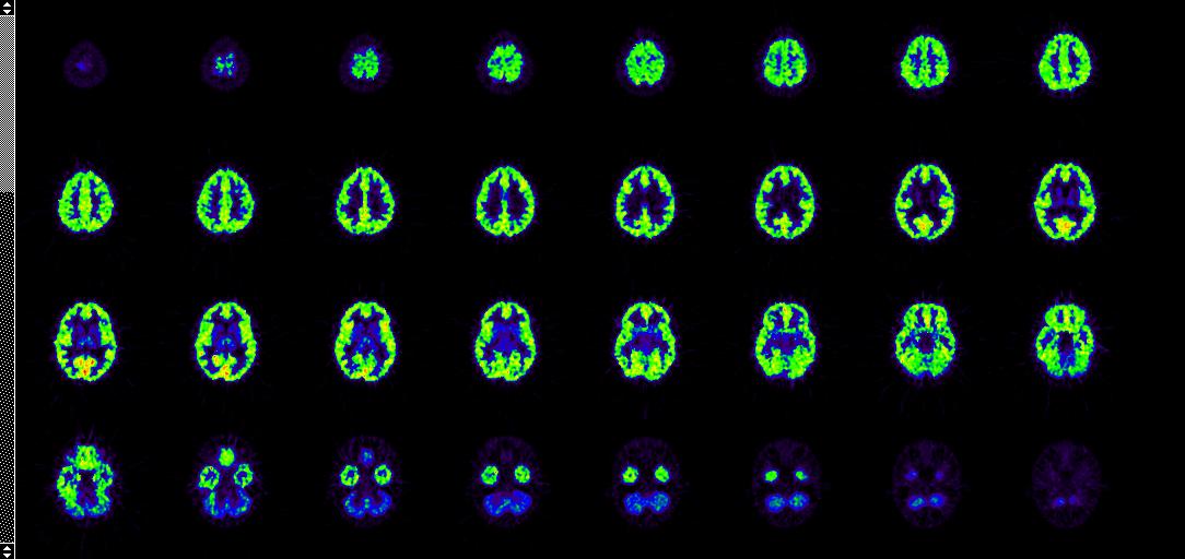 [18F]fluoro-deoxy-glucose (FDG) Ki image computed with program imglhki. Image planes (35 slices, thickness 4.25 mm) are animated in top-to-bottom order.