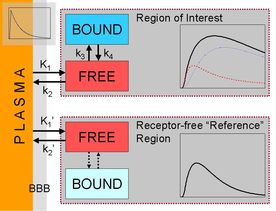 The (full) reference tissue compartmental model [Cunningham et al 1991] is the original and "gold standard" of reference tissue input methods for the estimation of binding potential (BPND) from reversible ligand-receptor studies. In most cases, it can be replaced by the simplified reference tissue model.