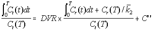 If metabolite corrected plasma curves are not available, the plasma curve can be replaced with reference region curve Cr(t). Then the slope of the linear phace is DVR [Logan et al. 1996]: