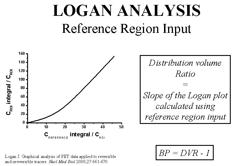 Logan J. Graphical analysis of PET data applied to reversible and irreversible tracers. Nucl Med Biol 2000; 27:661-670.