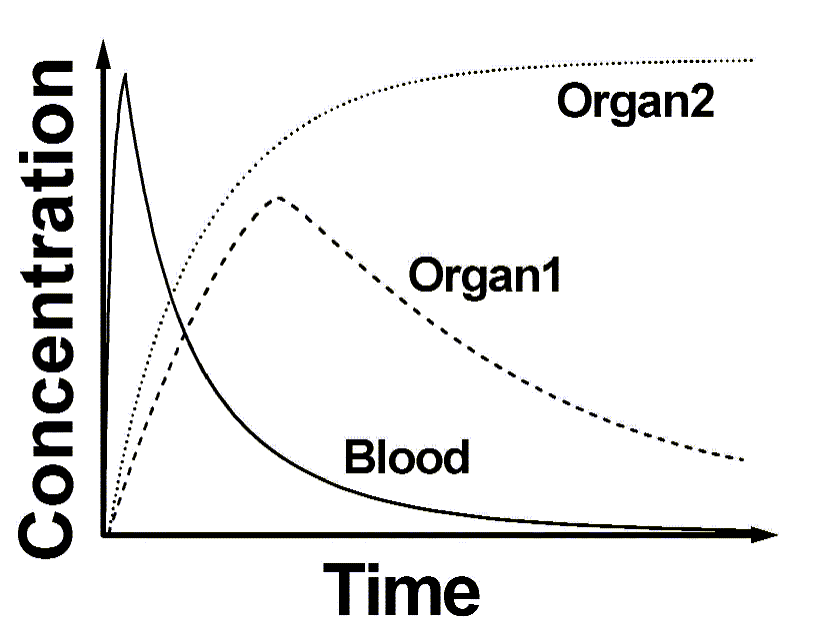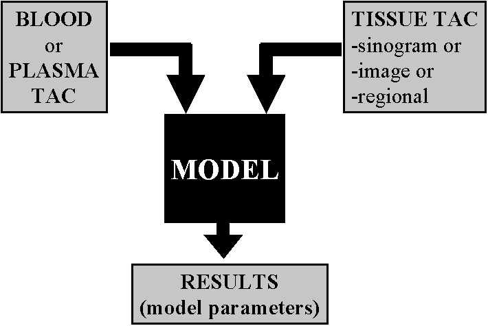 PET scanner can deliver quantitative images of radioactivity (Bq/voxel, or kBq/mL). The chemical identity of the labeled molecules is only known at the moment of injection. Due to metabolism in blood, in the tissue region of interest, and in other tissues, different labeled compounds are formed in the course of time. The relative amounts of different radioactive compounds in plasma can be measued from arterial blood samples as a function of time.